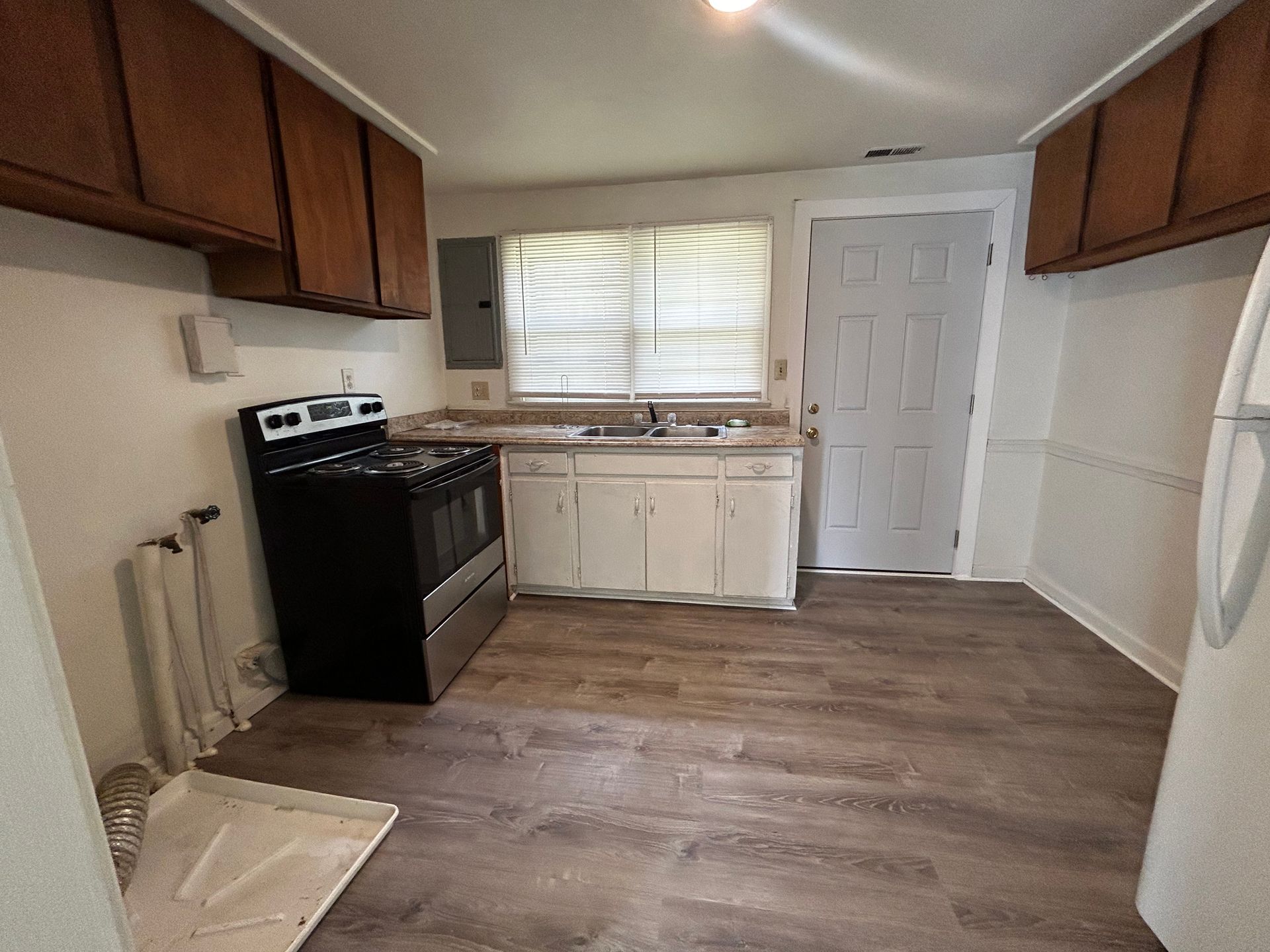 This two bedroom, one full bath duplex offers a large living room with luxury vinyl plank, flooring, a kitchen, a full bath and a large yard. No pets please. Available for a quick move-in.